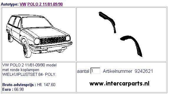 Zijn de Polo Coupe en Polo Classic / Derby bijna altijd standaard zijn uitgevoerd met spatbord verbreders, de steilheck moet deze veelal ontberen. Waarom? omdat niet iedereen zich een Carat/Paris of X1 kan of wil veroorloven, maar vooral ook omdat de vorm van de achterste wielkasten het eenvoudig weg niet toelaten op een galante manier verbreding toe te passen. Maar de aftermarket zou de aftermarket niet zijn als ze niet TOCH met een setje verbreders op de proppen zou komen. Volgende is afkomstig van de website intercarparts.nl